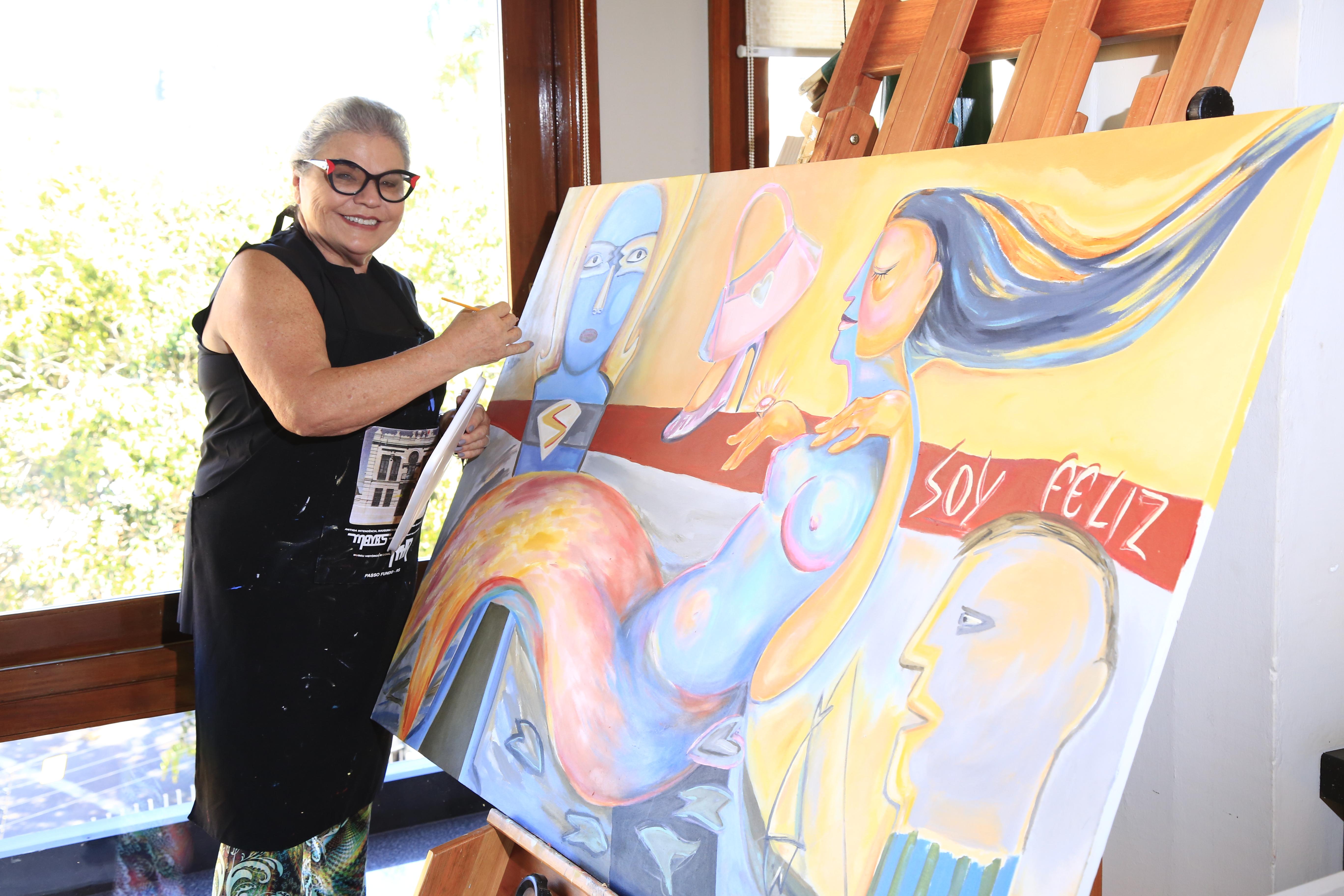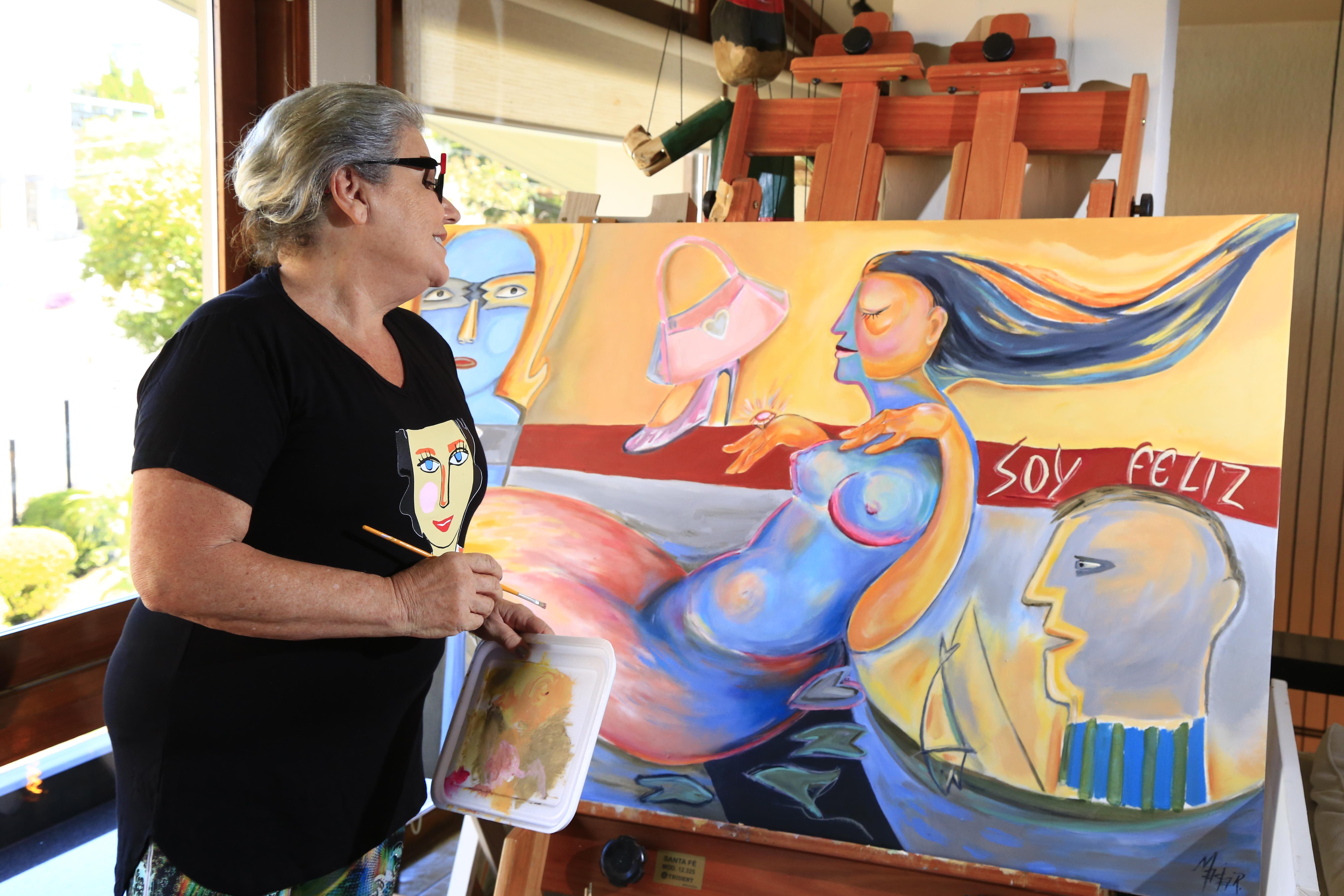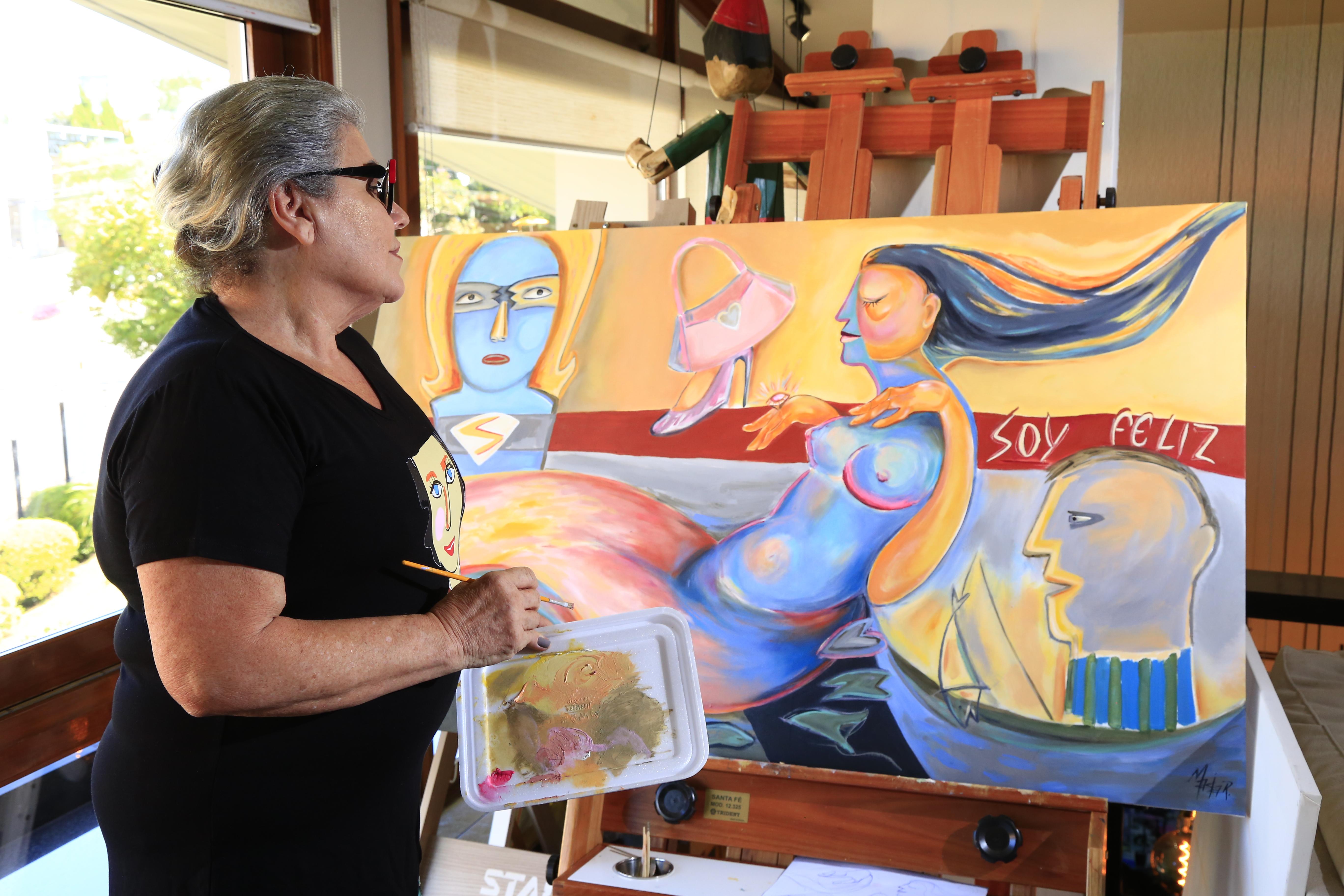 The work of artist from Passo Fundo, Nadja Rossato, has been gaining more and more space in exhibitions abroad. The striking characters created by Nadja, full of color and personality, can be seen, this time, on the “Million Euro Maritime Mural”, on display at the marina in the city of Puerto Banús, Spain, until August.