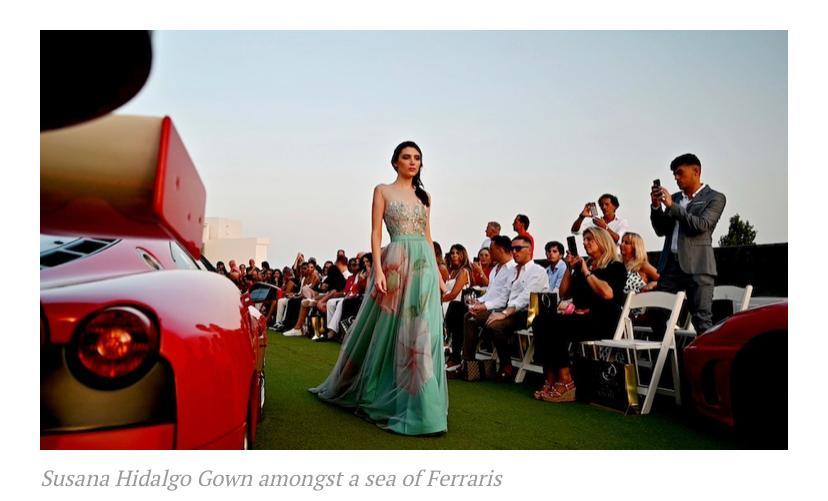 The fashion event featured a fusion of haute couture from two local Spanish designers Susana Hidalgo the Queen of contemporary bridal wear in Spain and Pepe Canela whose work is reminiscent of the silver Screen, you can visualise Betty Davis or Audrey Hepburn in every look, alongside Brazilian designer Clarissa Rossato who flew over 7,534 km to showcase amongst the biggest selection of Ferraris in the whole of Europe.