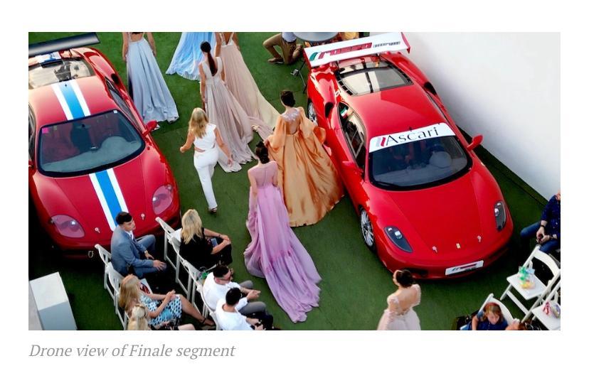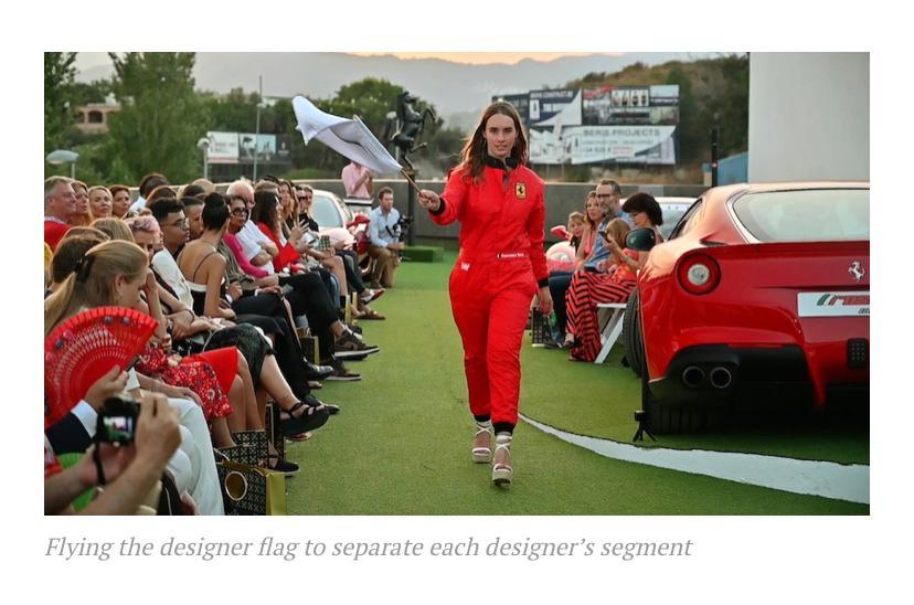 Combing luxury fashion, the skyline of Marbella and the roof top of the only independent Ferrari showroom in the whole of Europe, that houses a jaw dropping 35 million Euros worth of inventory, Rosso Corsa Marbella owned by Francesco Sena. By adding Ferraris directly on the runway and graceful models ascending from between them was a spectacle for all to see.